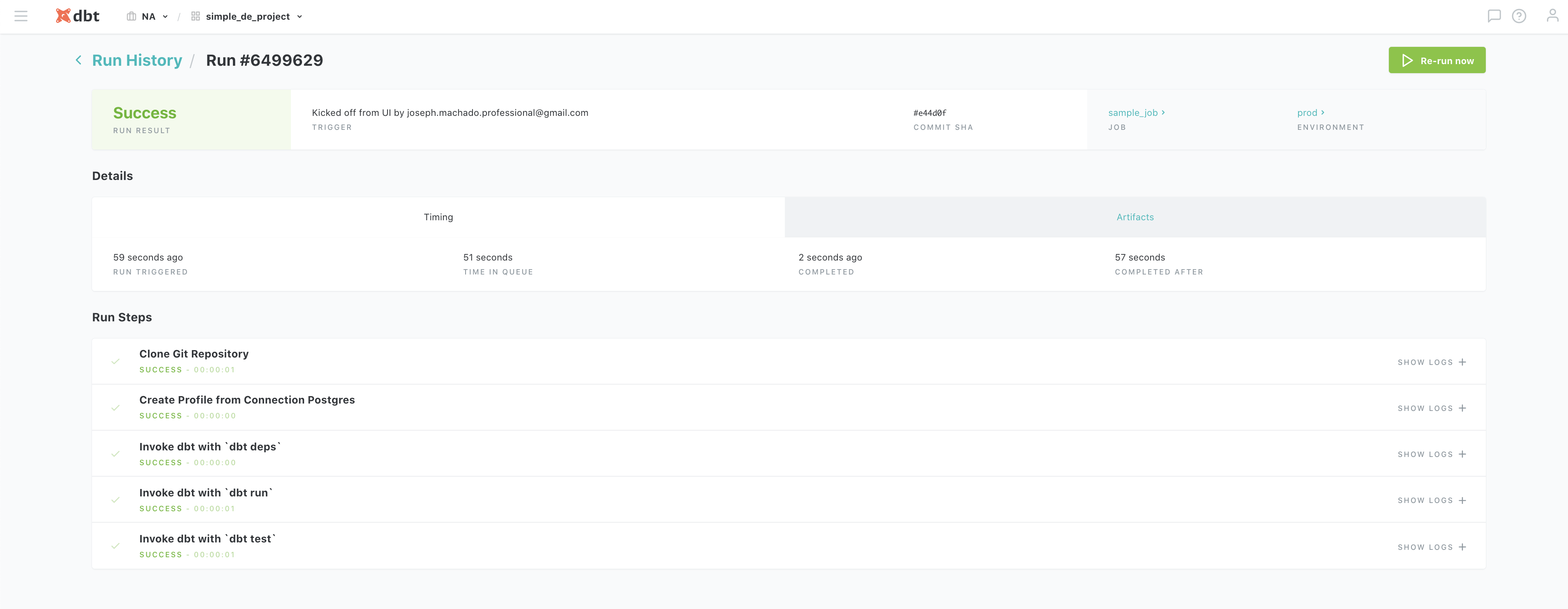 wait for the data to get loaded into operations schema and then the dbt run to start, you will see that it fails because the value of blah is not permitted for order_status and sends you an email(or slack if you had that setup) alert.