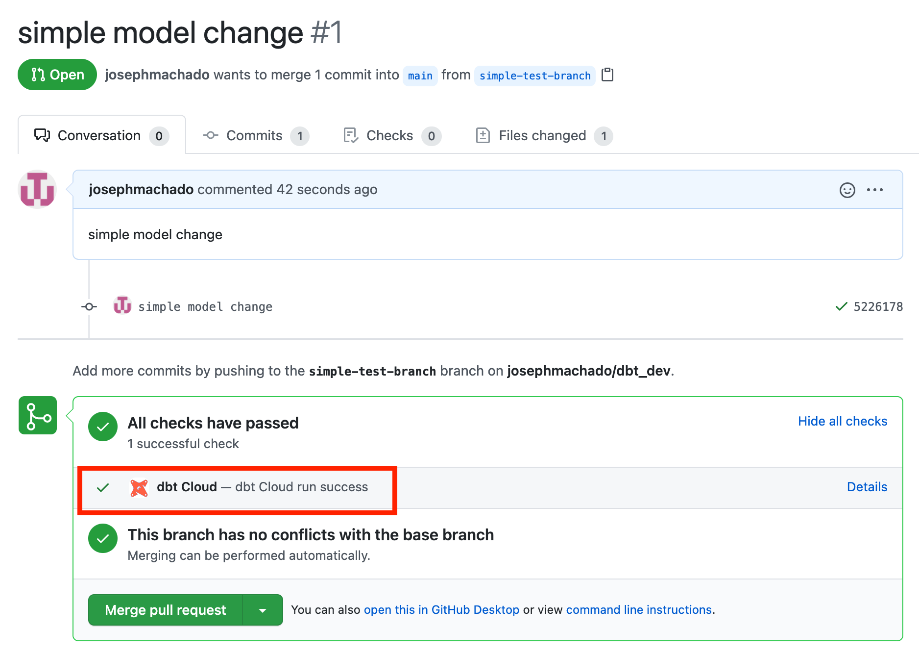 After the CI jobs pass, you can be confident that your code will work as expected on your current production data. You can merge your pull request.