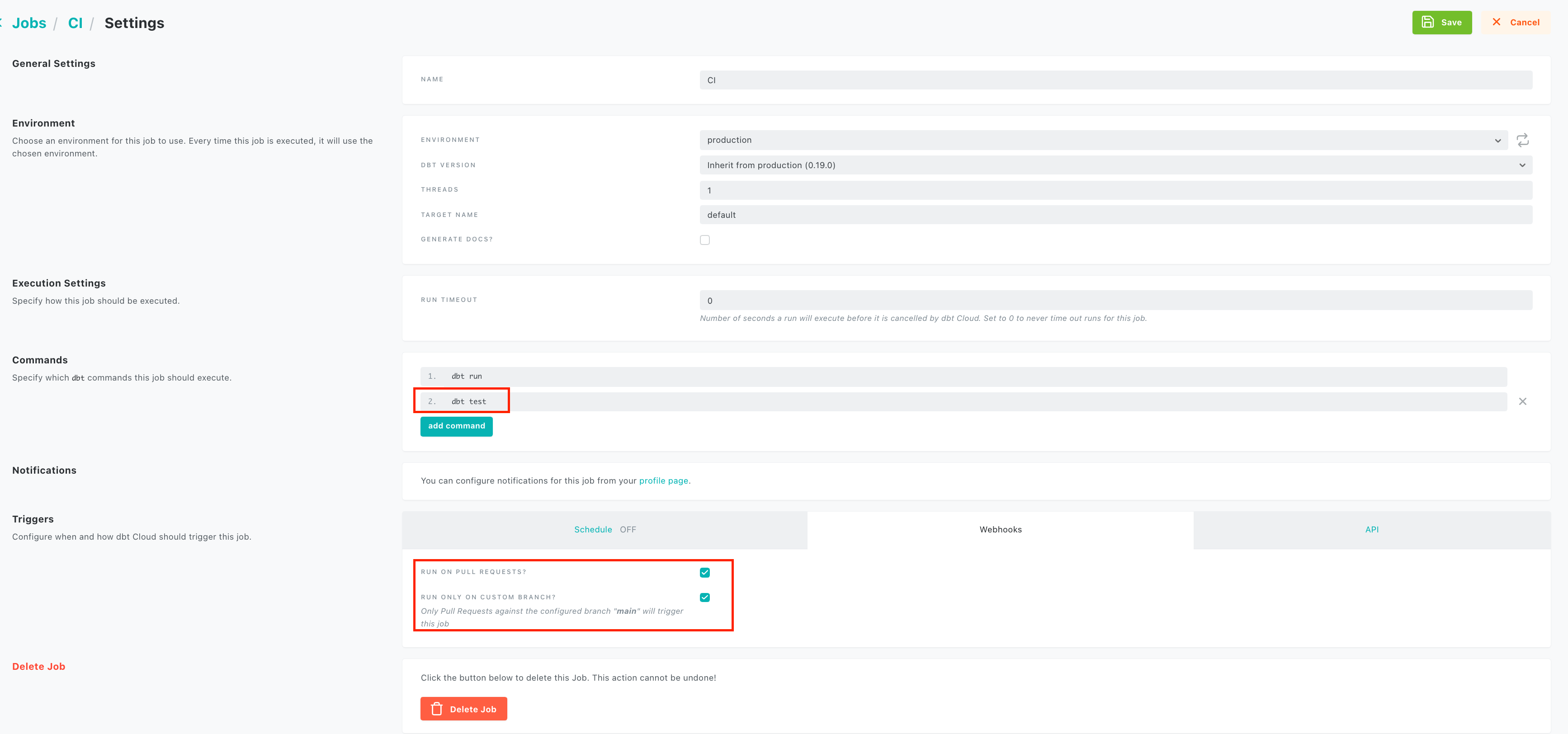 You can setup dbt cloud to run a CI job on every pull request into your main branch. After this, on every PR, dbt cloud will do the following