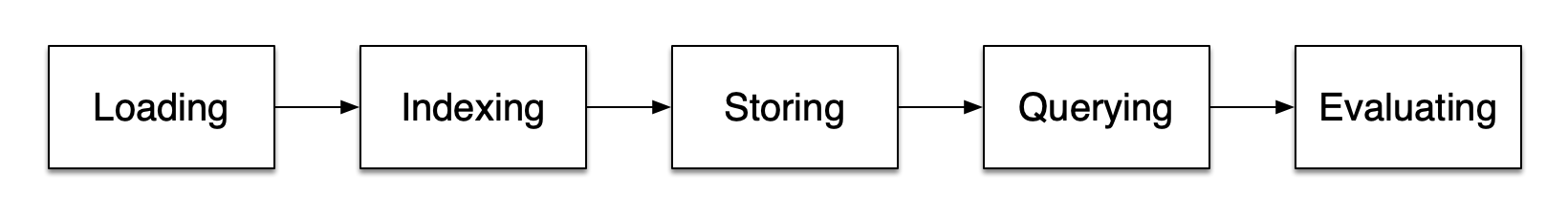 Loading: This stage involves reading raw data (.sql, .md, .pptx, etc.) files and transforming them into LlamaIndex’s internal structure of documents and nodes.Indexing & Storing: This stage involves creating and storing a numerical (or other options) representation of the document and nodes. The stored numerical data will be used when querying to provide the LLM API with the context most relevant to the user’s query.Querying: This stage represents taking a user query and using the stored index to get relevant context. The user query and the appropriate context are sent to the LLM API to get the results.Evaluation: This stage involves using objective metrics to measure the quality of the responses.