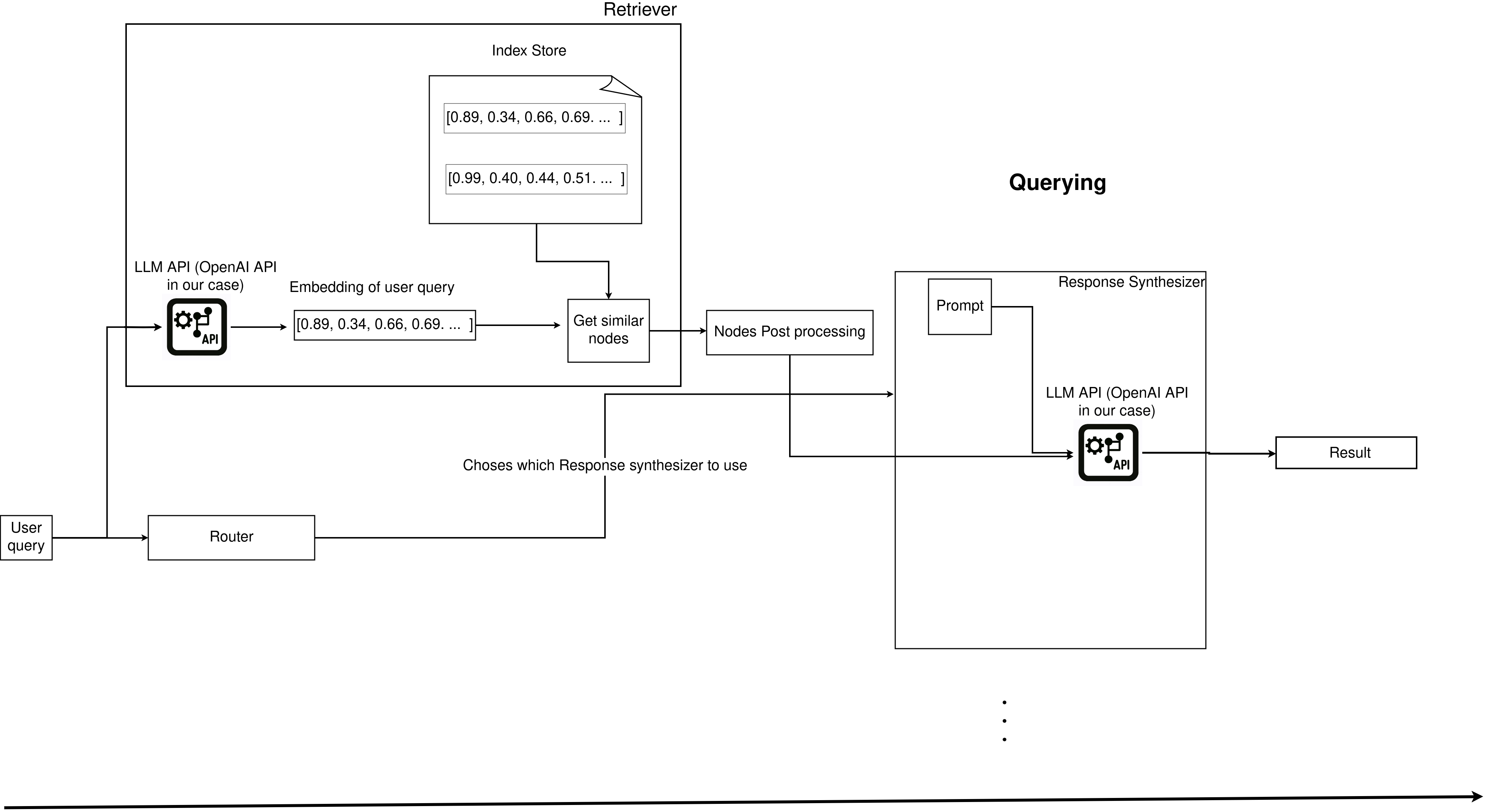 We will go over the individual components of querying, but LlamaIndex provides a way to query LLM with relevant context simply as shown below (full code at query_manager.py):
