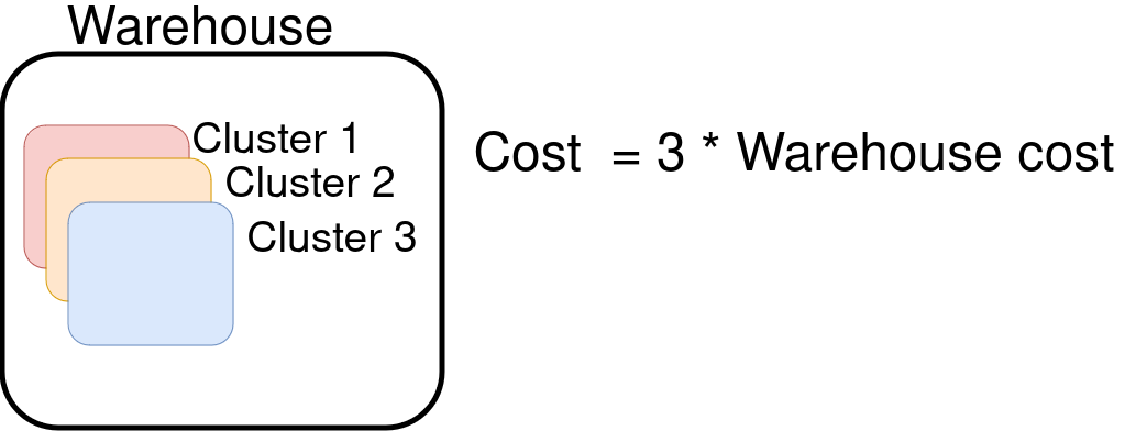 sql ALTER WAREHOUSE your-warehouse-name SET WAREHOUSE_SIZE = 'LARGE';Snowflake enterprise version(and above) allows you to scale out warehouses with clusters, what this means is that if there are a lot of queries coming in Snowflake can start another cluster which is part of the same warehouse to run your queries. If you have n clusters in your warehouse, you will be charged (n * cost per warehouse). Keep the default number of clusters in warehouses to one, unless absolutely necessary.