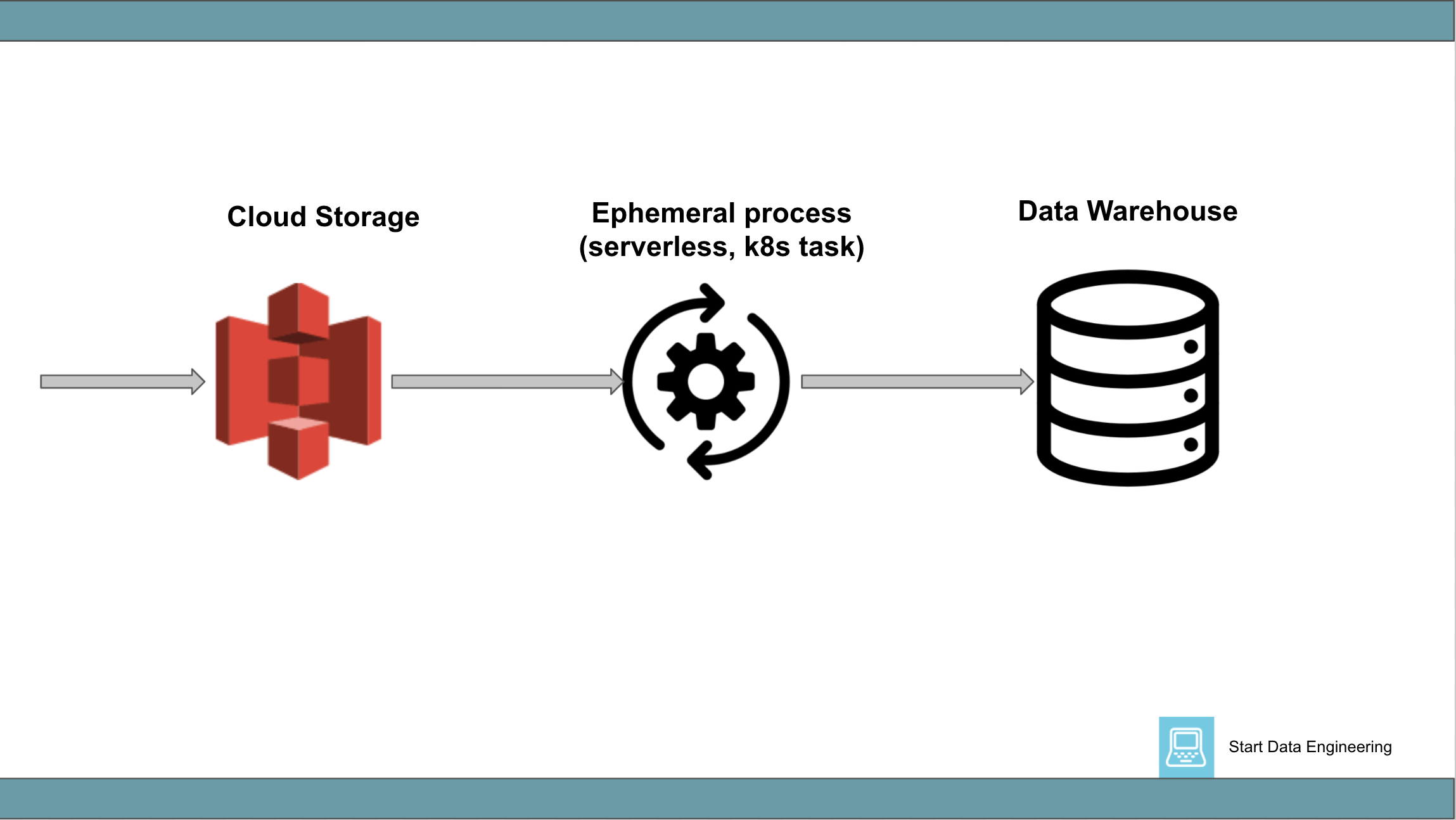 - Some data warehouses also support this patter (e.g. Snowpipe).