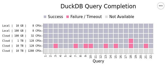 Look at this performance chart from Coiled, which shows DuckDB’s performance on TPCH queries.