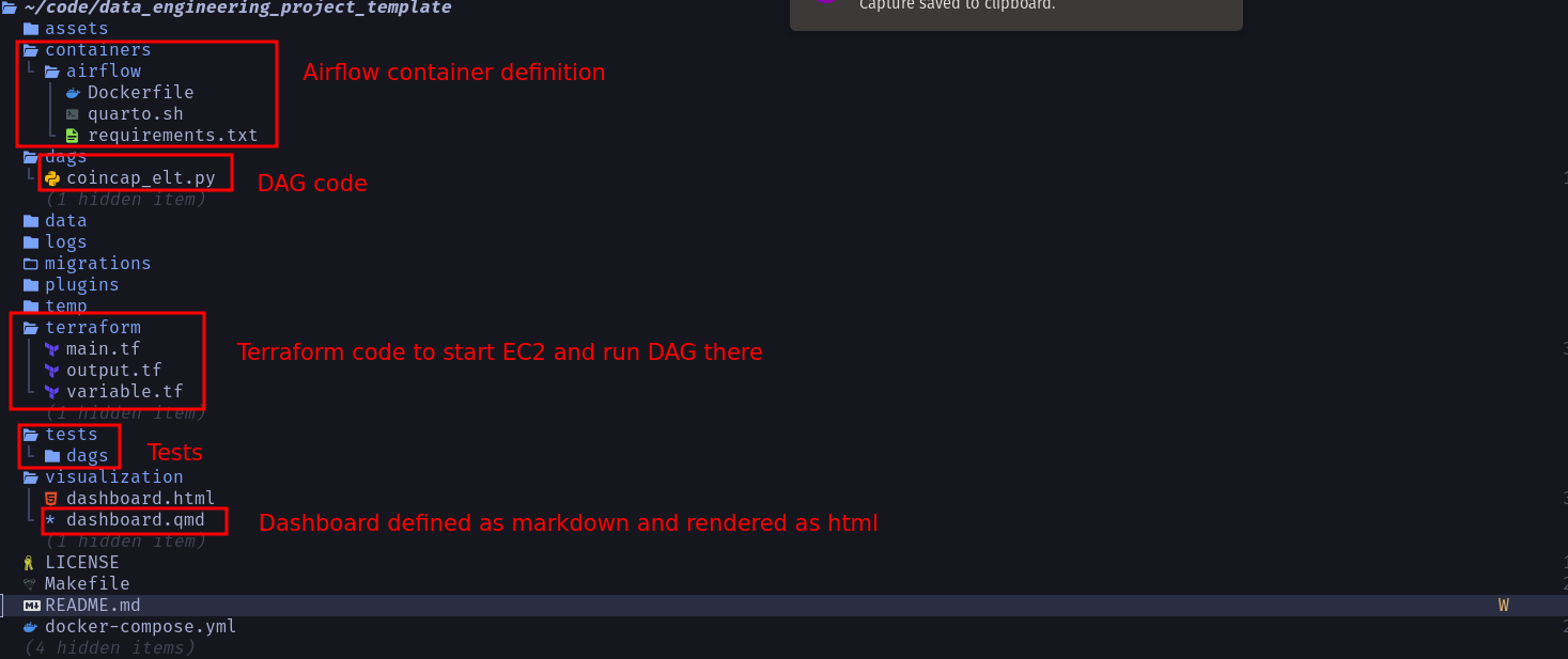 This data engineering project template, includes the following: