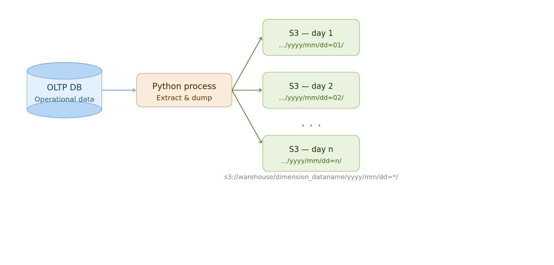 To preserve historical data, ingestion systems create one output folder (partition) per extract. The folder path is typically the pipeline’s run date.