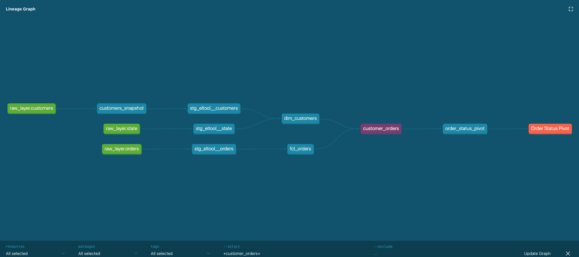 We will see how the customer_orders table is created from the source tables. These transformations follow warehouse and dbt best practices.