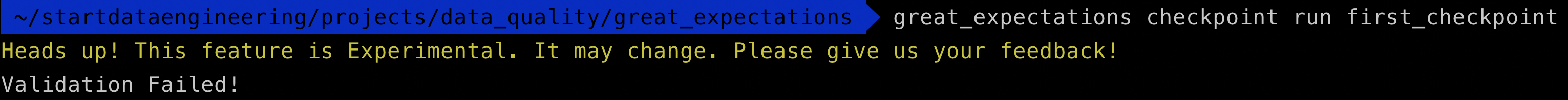 Now that we have seen how to run tests on our data, we can run our checkpoints from bash or a python script(generated using great_expectations checkpoint script first_checkpoint). This lends itself to easy integration with scheduling tools like airflow, cron, prefect, etc.