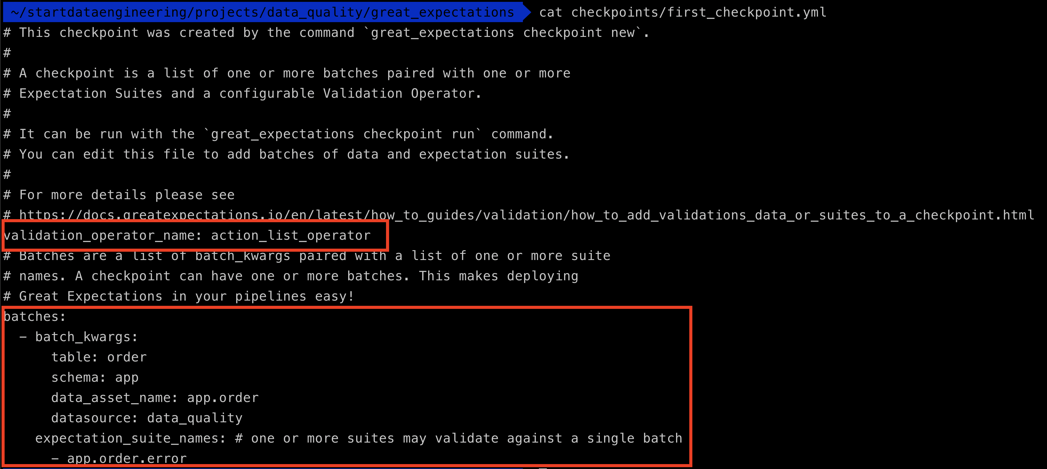 Let’s take a look at our checkpoint definition, by looking at the yml file contents